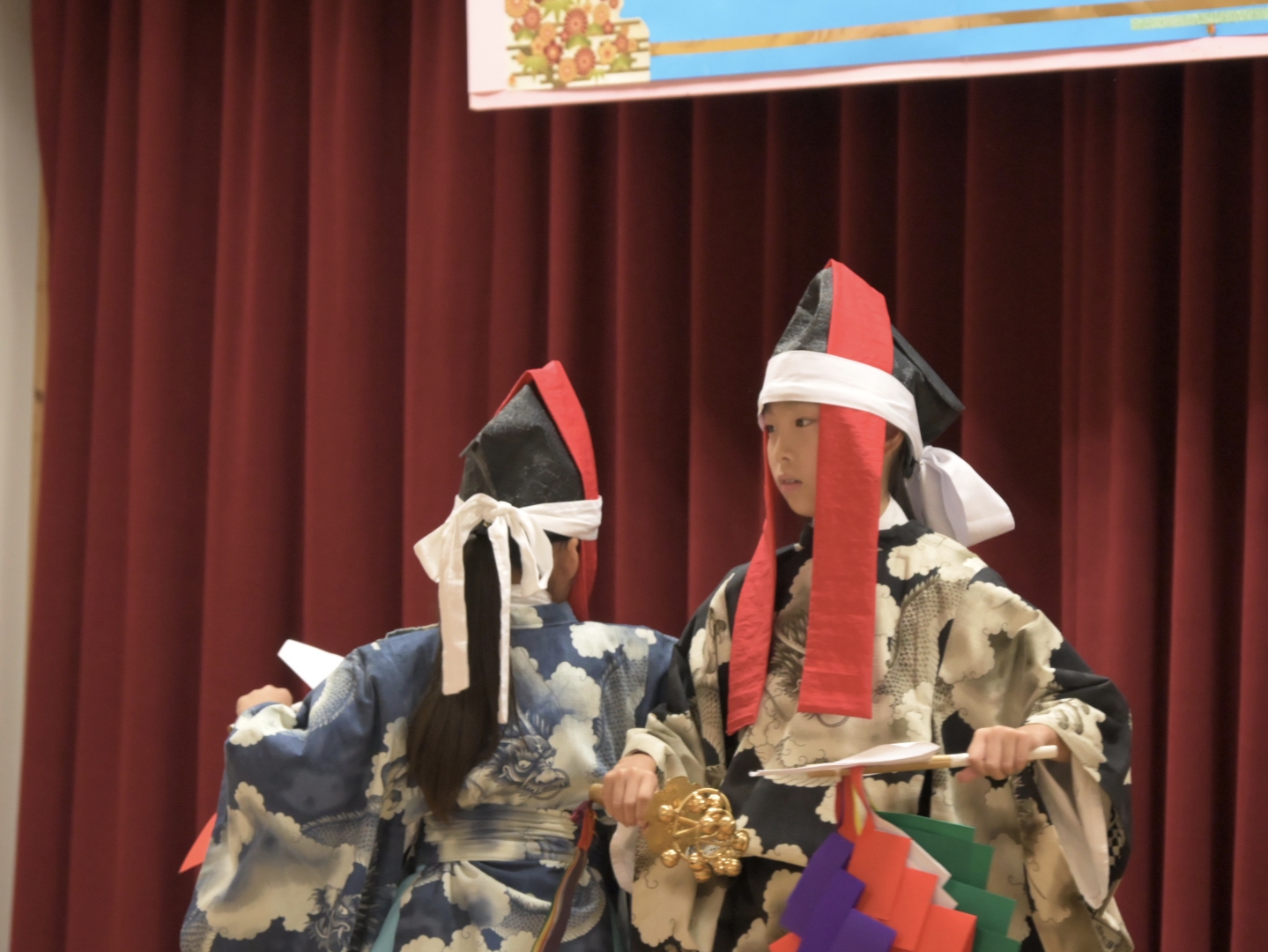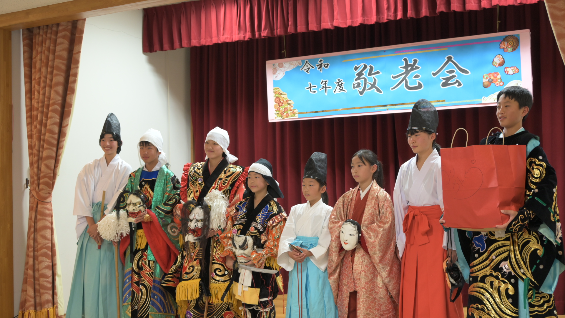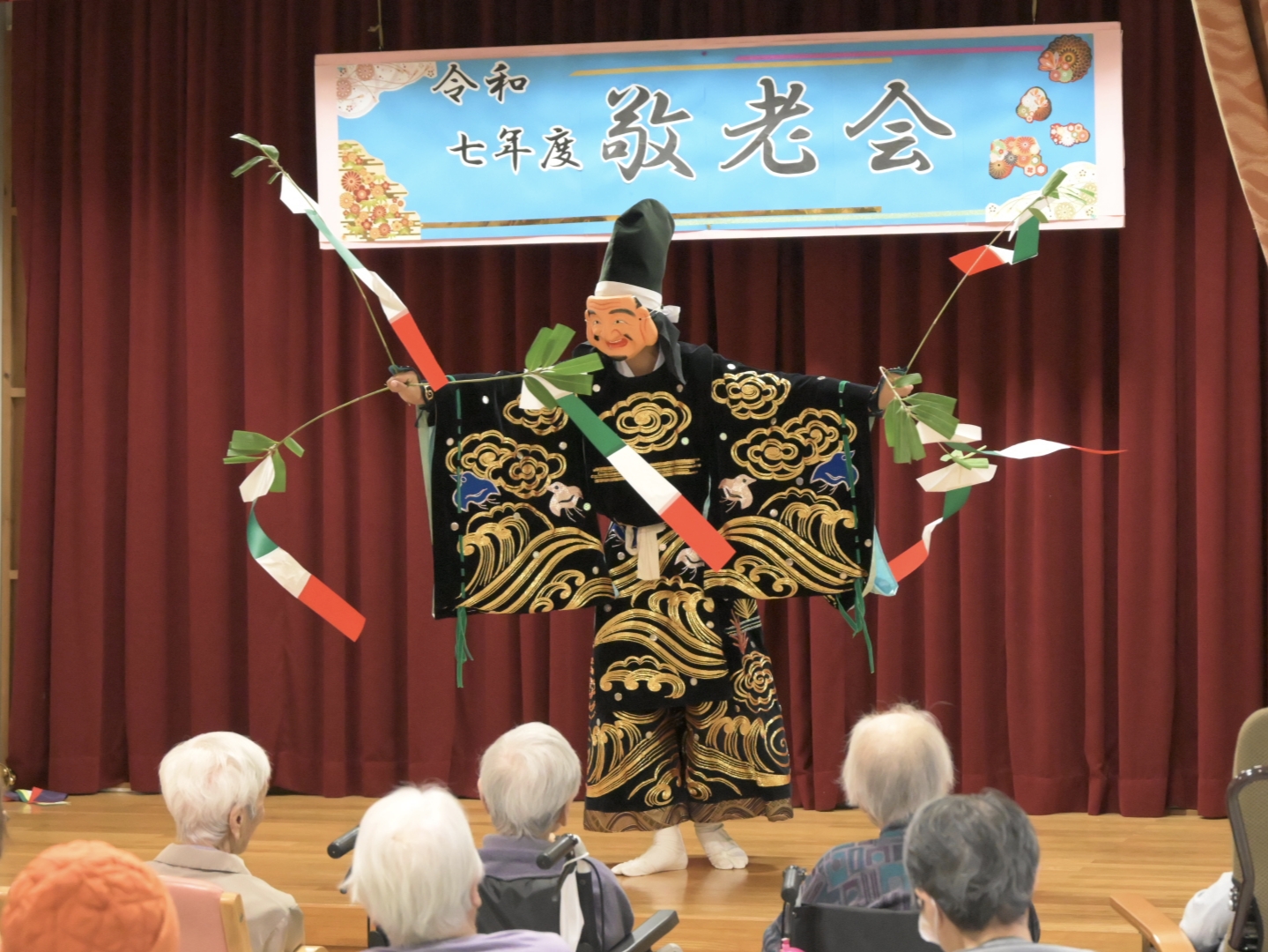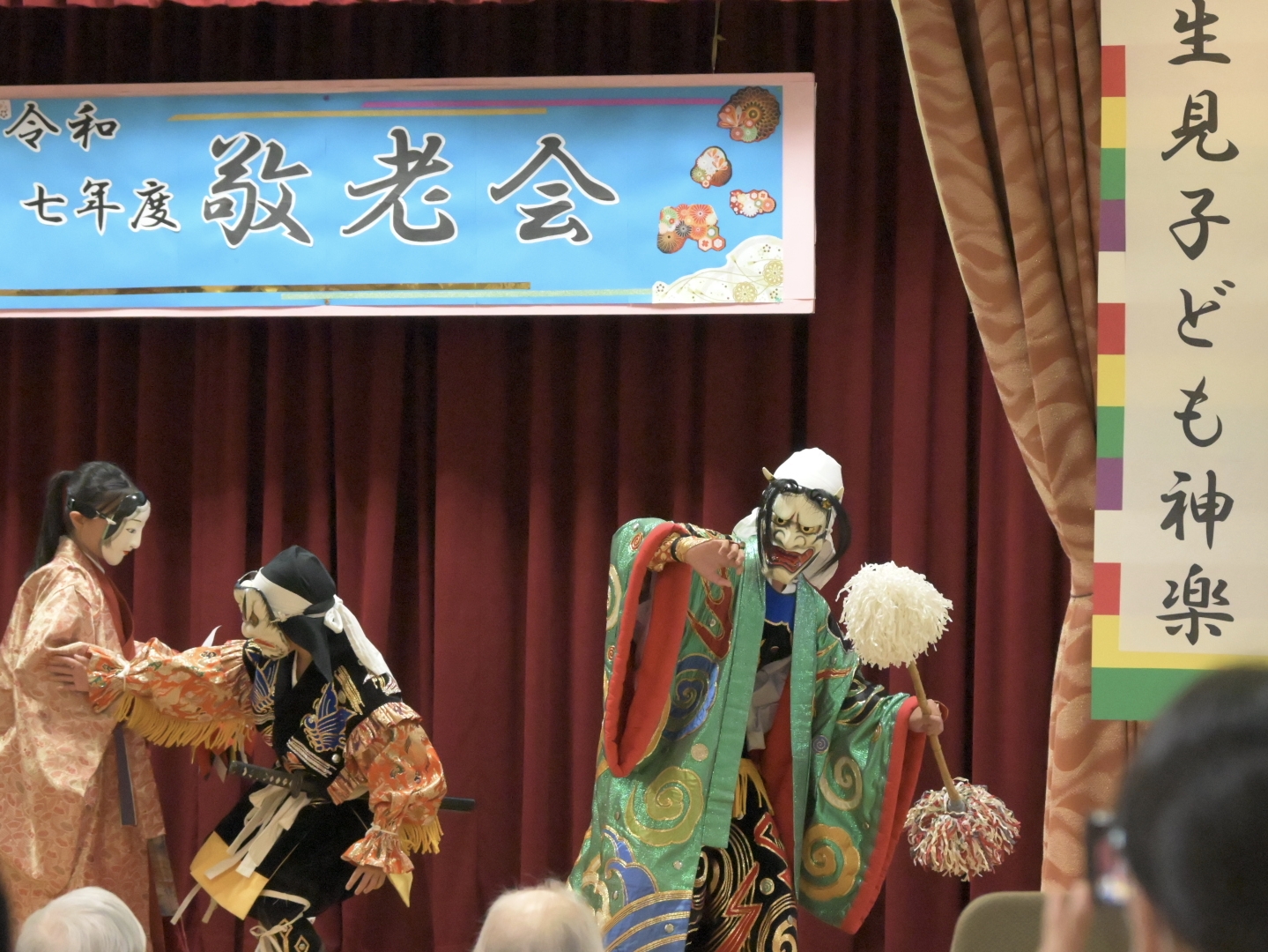 美川苑で敬老会が開催され、生見こども神楽の皆さんによる神楽舞の演目が披露されました。